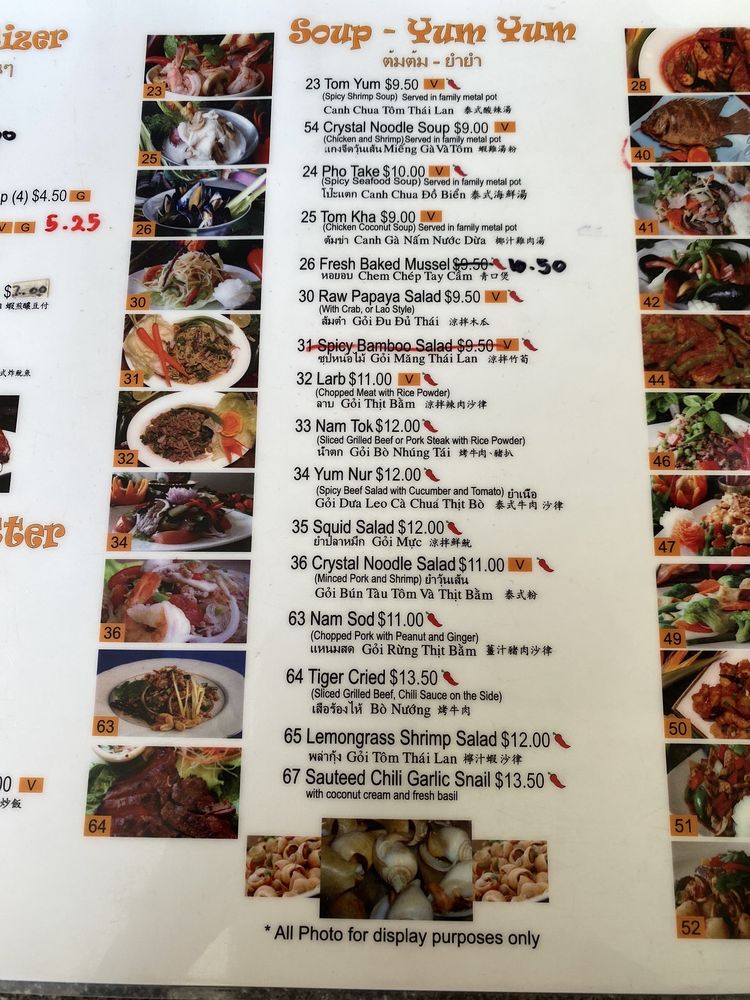 Introducing the menu at Thai Spice Express, located at 8282 Bellaire Blvd Ste 112 in Houston, TX, offers a delightful selection of authentic Thai dishes. From savory appetizers like Chicken Cake Salad and Crispy Spring Rolls to flavorful soups including Crystal Noodle Soup and Lemongrass Shrimp Salad, the menu is filled with options to satisfy any craving. Special platters like House Fried Rice and Sticky Rice with Charcoal Pork showcase the diversity of flavors and ingredients used in their dishes. With a casual atmosphere and a range of utilities like delivery and catering, Thai Spice Express is a great spot for groups or individuals looking for a delicious Thai dining experience. Do not miss trying their Tempura Calamari and Larb Salad for a burst of spicy goodness. Overall, Thai Spice Express promises a memorable and tasty culinary journey for every visitor.